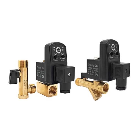 Válvula de drenaje temporizada electrónica de conmutación automática de alto flujo 2W 3/4 "1" 1,5 ''2" Válvula de control de solenoide neumática de latón